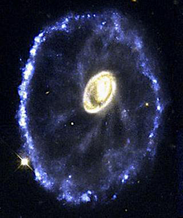 credit photo: European Southern Observatory ESO/VLT | |  | Spiral galaxy M104 or NGC 4594 | | | | | Galaxy of the Sombrero M 104 NGC 4594 in the heap Virgo. This brilliant galaxy owes this name of Sombrero to its appearance. According De Vaucouleurs, we see it since just 6 degrees in the South of the equatorial plan, realized by a thick dark band of opaque dust. This characteristic was probably the William Herschel's first discovery with its big telescope. | | Image: Opposite, the dissimilar image of 3 photos taken by the camera FORS1 of the VLT Antu (European telescope of 8,2 m of the ESO based in Chile). It was obtained after an exposure of 6:20 am on January 30th, 2000. | |  | Spiral galaxy M101 or NGC 5457 | | | | | Galaxy " Pinwheel " M101 or NGC 5457, called also the Galaxy of the Mill, is a spiral galaxy among the most brilliant of the sky. M101 belongs to a group of at least 9 galaxies, the most striking members of which are NGC 5474 and NGC 5585. Other likely members of the group NGC 5204, NGC 5238, NGC 5477, UGC 8508, UGC 8837, and UGC 9405. The distance of M101: 24 (+/-2) million light years. With a diameter of 170 000 light years it is situated among the biggest galaxies. M 101, is a striking example of spiral galaxy, the relative nearness of which about 22 million light years allows to study it in detail. It seems that gravitational interactions with a nearby galaxy create waves of high mass and condense the gas which continues to turn around the center of the galaxy. These waves compress the incited gas and provoke the formation of stars. | | The result is that M 101, has numerous regions of formation of extremely brilliant stars (called regions HII) spread over the spiral arms. M 101 is so big as its immense gravity deforms the smallest close galaxies. | |  | Spiral galaxy M81 or NGC 3031 et M82 | | | | | The buxom and beautiful spiral galaxy M81 lies in the constellation Ursa Major. It was discovered by Johann Elert Bode in 1774. M81 NGC 3031, is a spectacular galaxy, easily detectable with binoculars. This galaxy forms a pair with remarkable M82, a member of the group called M81 group. The two galaxies are close enough because the distance between their centers is only about 150 000 light years. This is one of the brightest galaxies in the heavens land, M 81 is also home to the second brightest supernova. The view below cons, reveals a bright yellow nucleus, blue spiral arms and large streaks of dust, all characteristics quite similar to the Milky Way. A trail of dust especially remarkable, pierces the galactic disk, below, left and right kernel. | | This vein of dust may be wandering the trace of a persistent rustling between M81 and its smaller satellite galaxy, M82. An examination of variable stars in M81 has yielded a distance determinations of the most reliable external galaxy, with 11.8 million light years. Image: Ci-cons, the galaxies M81 and M82 right to left. These two giant galaxies deliver an intense gravitational battle that has lasted for billions of years. The severity of each galaxy in a major way affects the other. Credit & Copyright: Leonardo Orazi | |  | Spiral galaxy M74 | | | | | With a striking nucleus and spiral arms developed possessions, M74 is a spiral galaxy, distant from 30 million light years, seen by the top situated in the Whale. It was discovered by Pierre Méchain in 1780 then observed by Charles Messier who integrated it into the catalog, some weeks later. Its mass is only 1/5 of that of our Galaxy but its diameter is 80 000 light years. The spiral arms contain many young stars or still in formation. | | M74 is the most brilliant constituent of a heap of galaxies which includes besides: NGC 660, UGC on 1171, UGC on 1175, UGC on 1176, UGC on 1195 and UGC on 1200. | |  | Galaxy NGC1672 | | | | | Numerous spiral galaxies present a bar in their center, but it certainly has nothing to do with prominent bar of the spiral galaxy NGC on visible 1672 opposite. We distinguish, veins of dusts represented by dark strands, of young people heap of blue stars, nebulas to the characteristic red brightness of the hydrogen, the long and brilliant one bar of stars there overlapping in the center, and to finish a brilliant active nucleus which accommodates probably a super massive black hole. The light puts not less than 60 million years to reach us from NGC on 1672, which measures about 75 000 light years of diameter. NGC 1672 is visible in the constellation of the Sea bream and makes the object of studies to discover how the bar can contribute to the formation of stars in the central regions of the galaxy. NGC 1672 shows here its region of formation of stars which is in a central galactic bar. | | Arms in spiral do not twist themselves completely since the center as we are in the habit of seeing it on the spiral galaxies but are attached to both ends of a straight bar of stars including the nucleus. The question which settles is: they develop systematically in the center of the spiral galaxies to disappear then. The visible galaxies behind NGC 1672 give the illusion to be incorporated into the leading galaxy, while they are much more taken away. Image: This remarkable image supplies a sight high definition of the big bar of the galaxy NGC on visible 1672 in the southern hemisphere, in the constellation of the Sea bream. Credit NASA: image of the spatial telescope Hubble | |  | Galaxy Cartwheel or ESO 350-40 | | | | | The Galaxy of the wheel of the cart (so known under the name of ESO 350-40) is a lenticular or annular galaxy situated in approximately 500 million years light of distance in the constellation of the sculptor in the southern hemisphere. It is surrounded with a ring of 150 000 light years of diameter, consisted of young and brilliant stars. This galaxy was a galaxy identical to the Milky Way before it undergoes a head-on collision with a nearby galaxy. When the nearby galaxy crossed the Galaxy Cartwheel, the strength of the collision caused a p